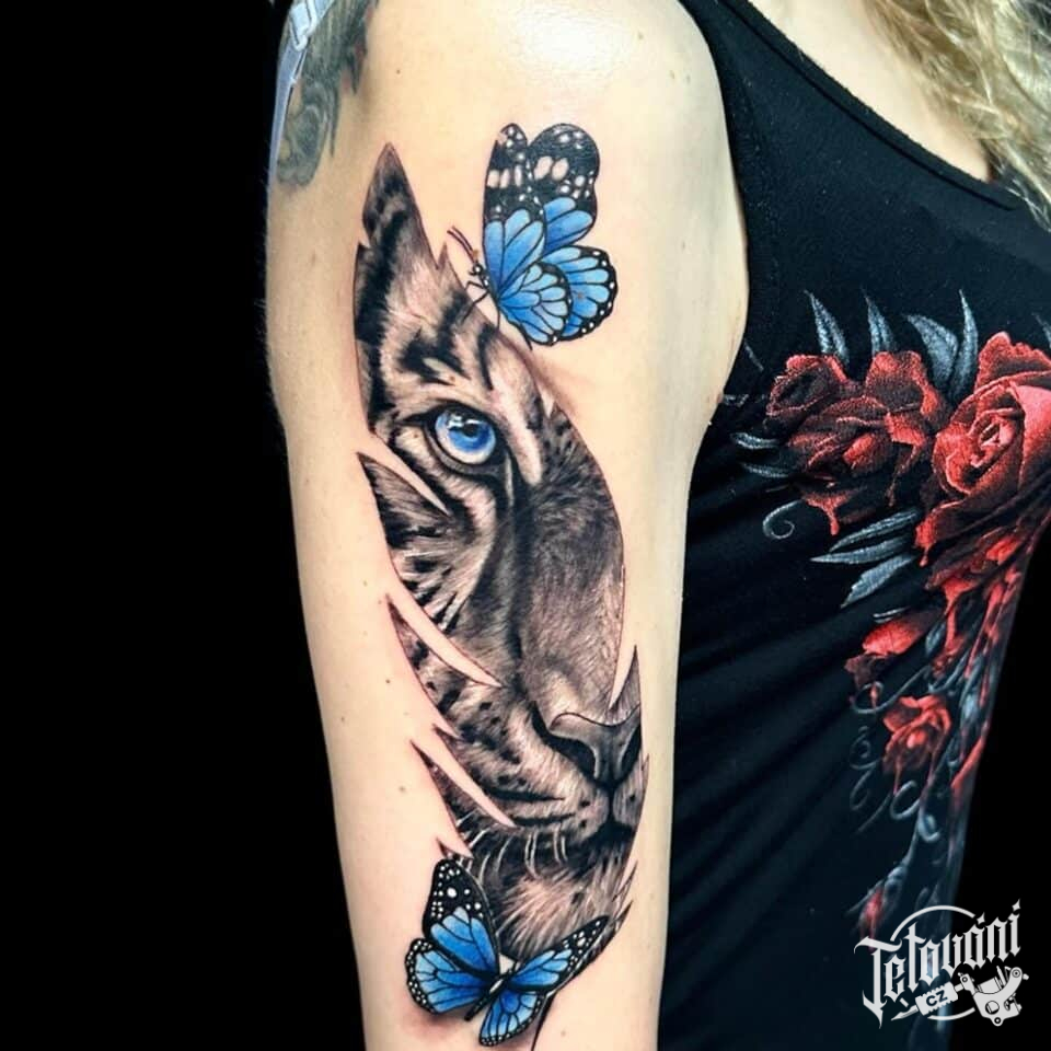 Tetování tygr na rameni