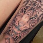 Tetování tygr na stehně