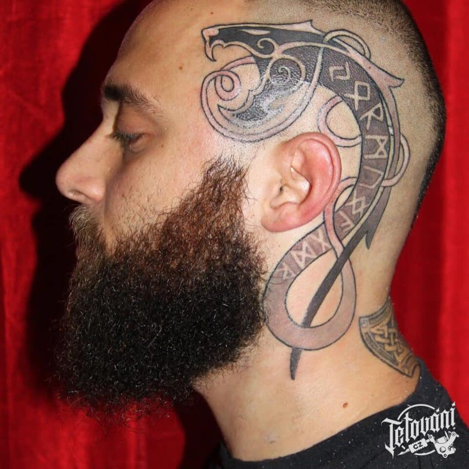 Tetování symboly, zvíře, had, runa písmo na hlavu
