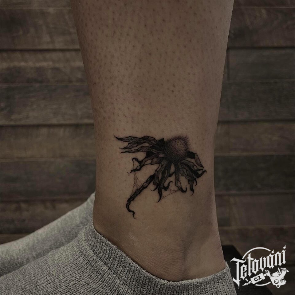 Tetování uschlá květina na kotník