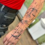 Tetování váhy znamení zvěrokruhu, hory, pták, nápisy, čáry na předloktí