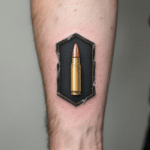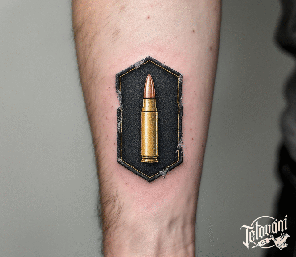 Tetování válečné motivy, zbraně, předměty, náboj na předloktí