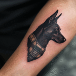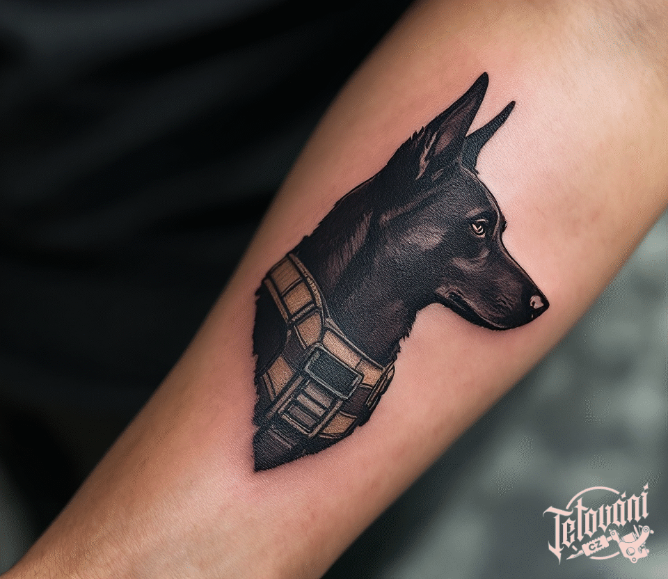 Tetování válečné motivy, vojenský pes na předloktí