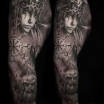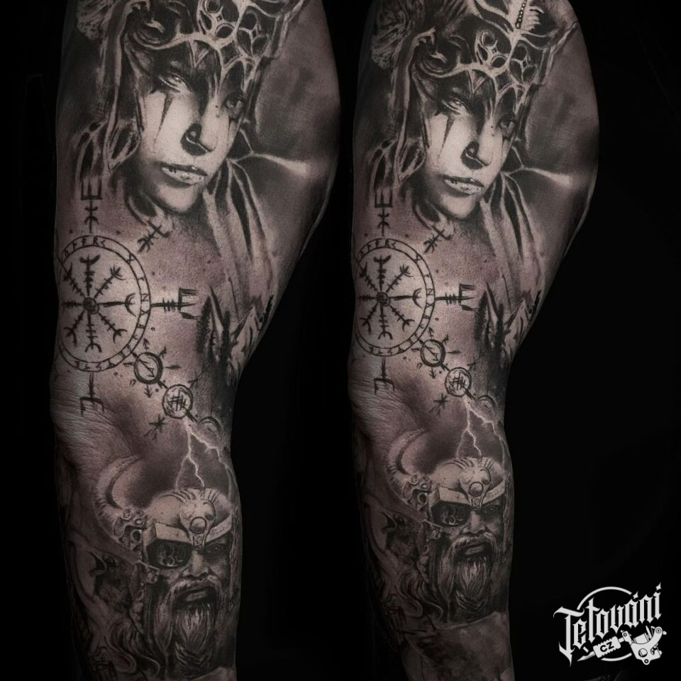 Tetování valkýra, vikingové, znaky a symboly, rukáv