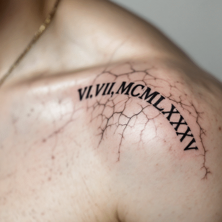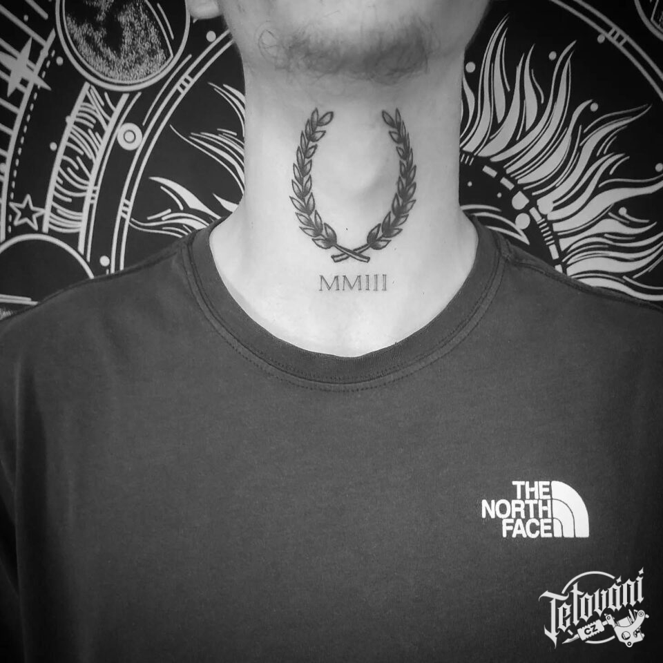 Tetování věnec a římská čísla na krku