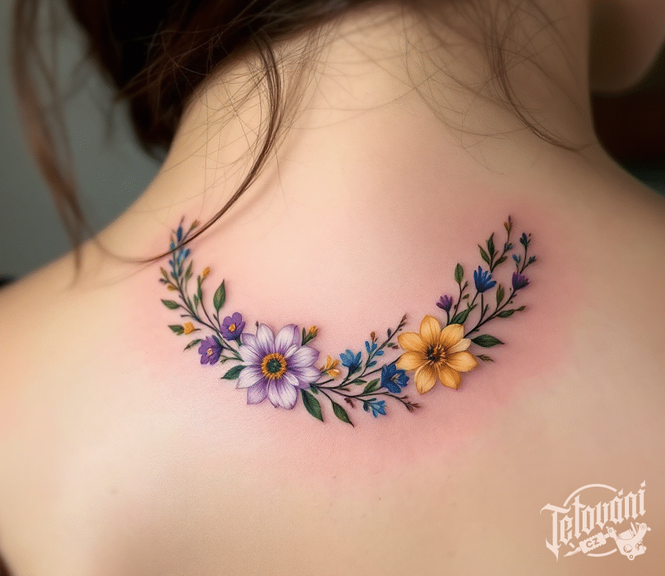 Tetování věnec z lučního kvítí na ůpáteř