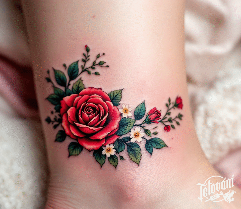 Tetování věnec z růží na kotník
