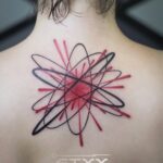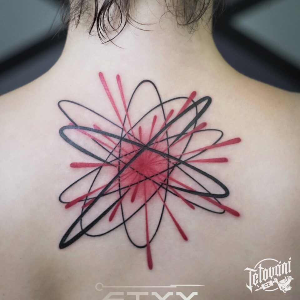 Tetování vesmír, čáry, velký třesk na zádech
