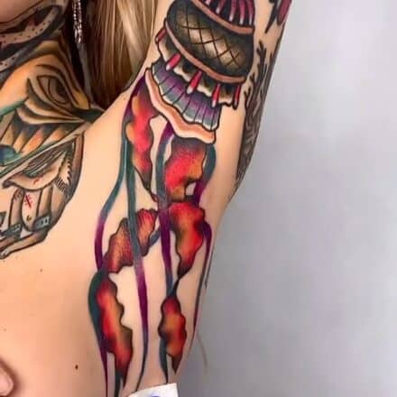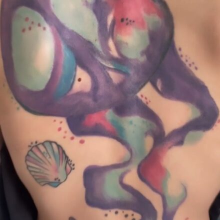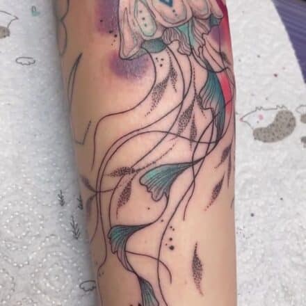 Tetování vesmír, galaxie, planeta, zvířata, medúzy na ruce