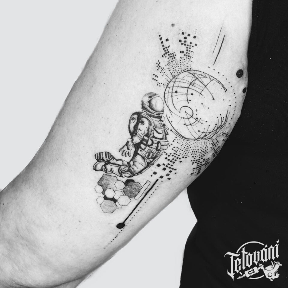 Tetování vesmír, kosmonaut, tvary na rameno