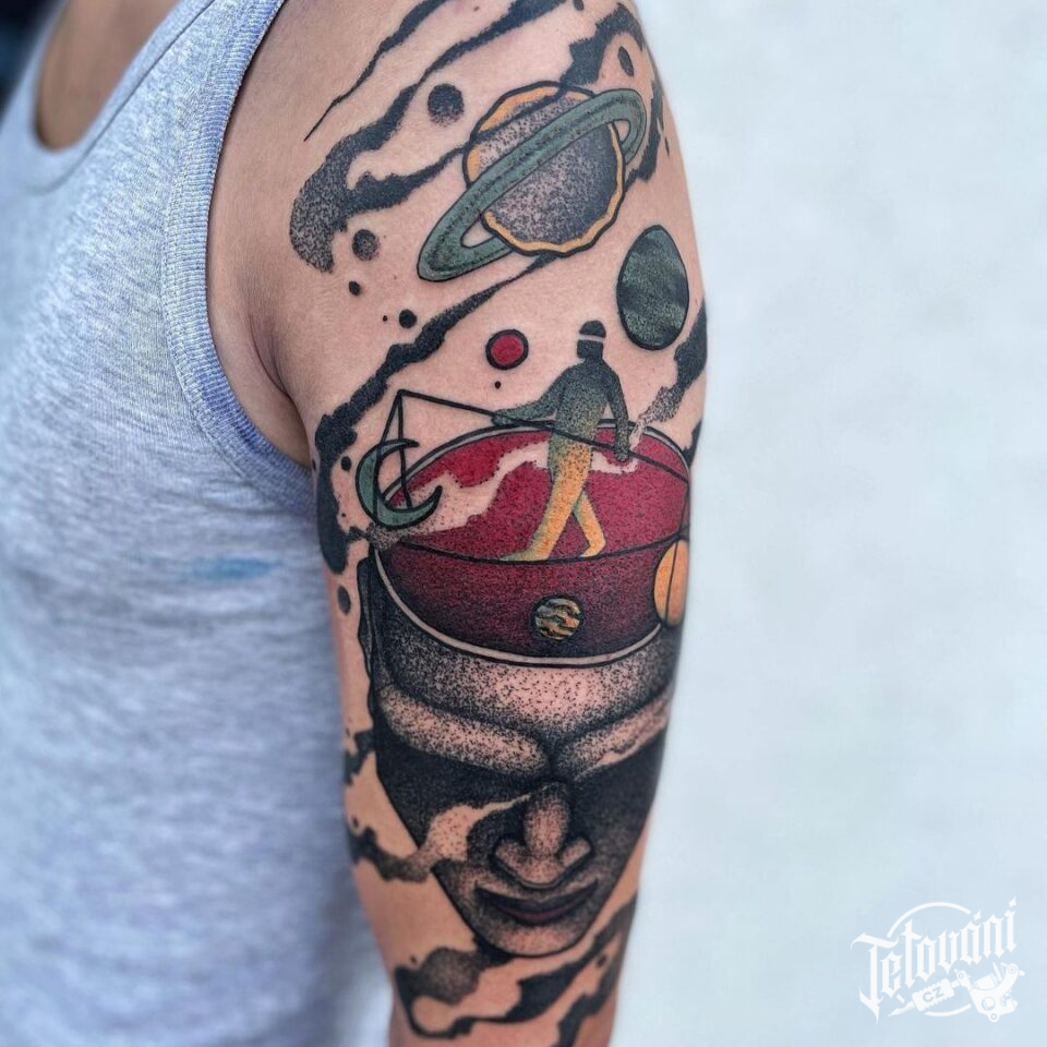 Tetování vesmír, maska na rameni