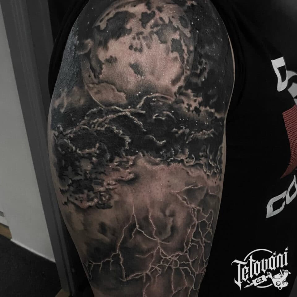 Tetování vesmír, Měsíc a blesky na rameni
