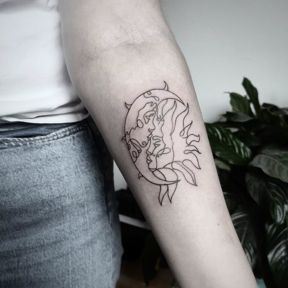 Tetování vesmír, Měsíc a Slunce na předloktí