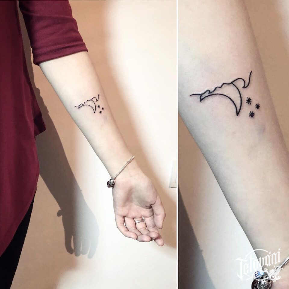 Tetování vesmír, měsíc s hvězdami na předloktí