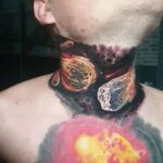 Tetování vesmír, meteority, nápisy na krku
