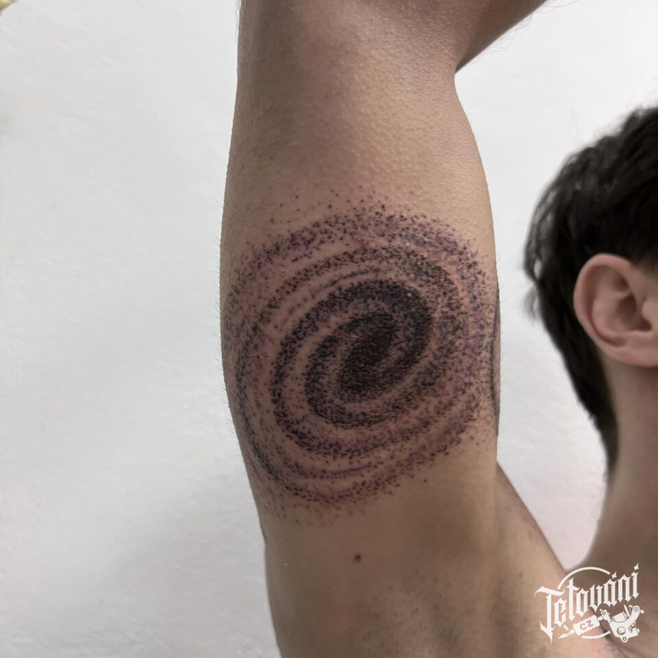 Tetování vesmír, mléčná dráha, symboly na paži