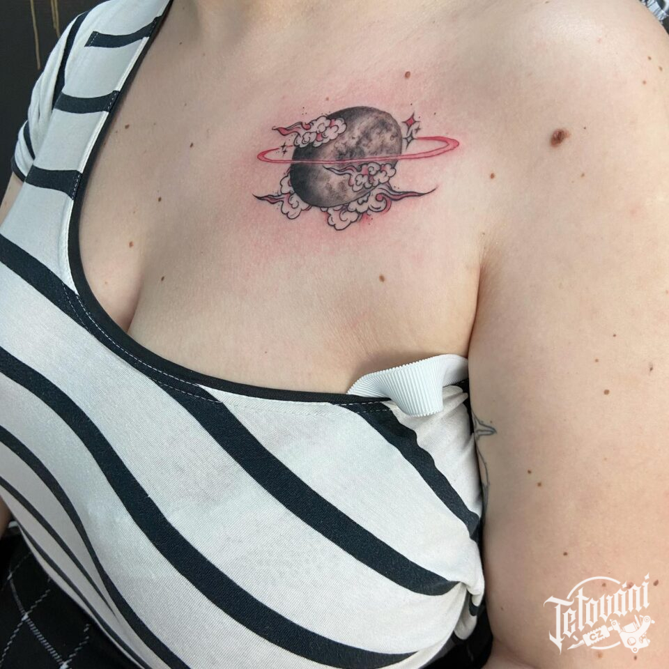 Tetování vesmír, planeta na hrudi