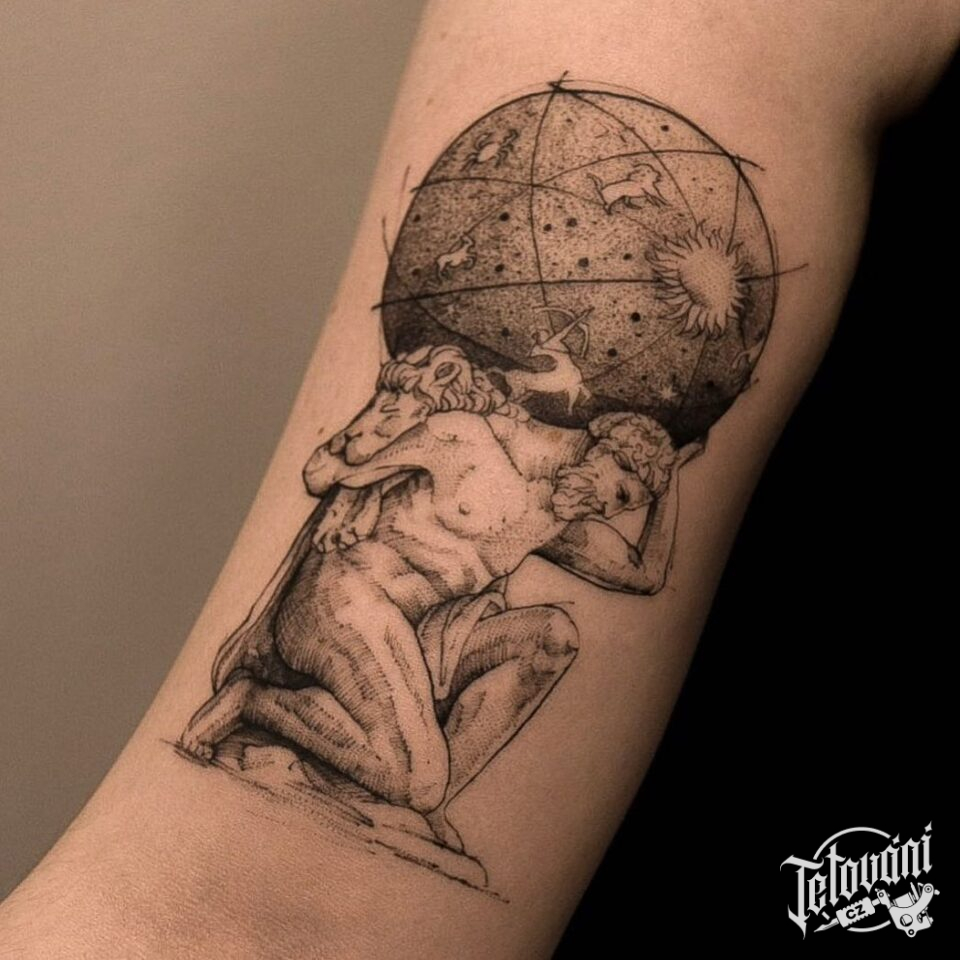 Tetování vesmír, planeta, znamení zvěrokruhu na paži