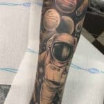 Tetování vesmír, planety a znaky a symboly, kosmonaut na předloktí