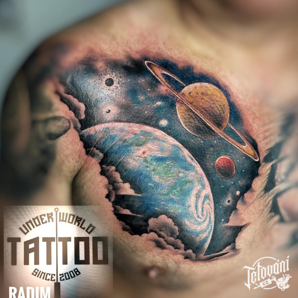 Tetování vesmír, planety na hrudi