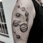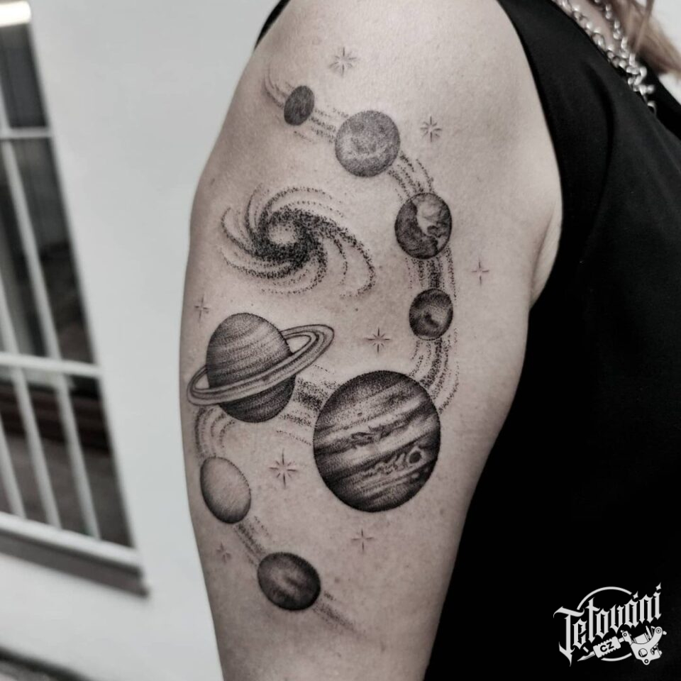 tetování vesmír, planety na rameni