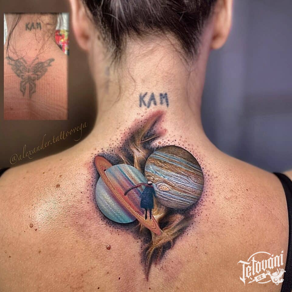 Tetování vesmír, planety na zádech