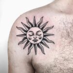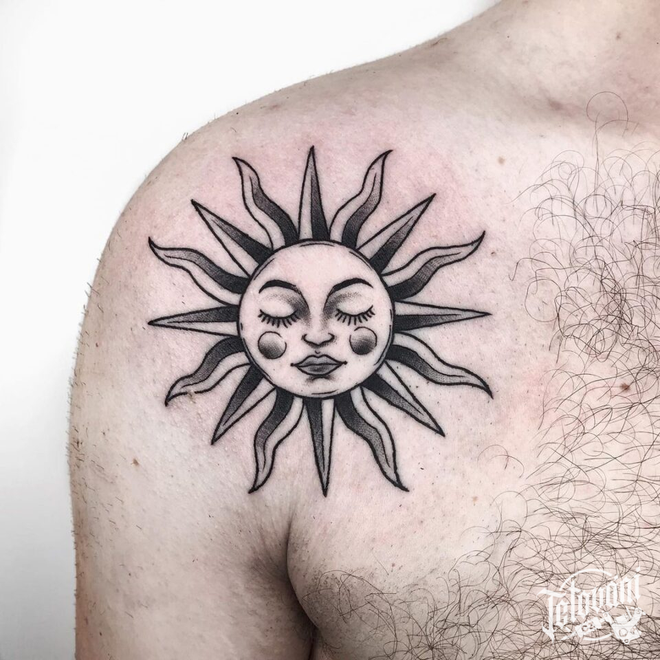 Tetování, vesmír, slunce na rameni