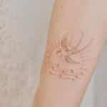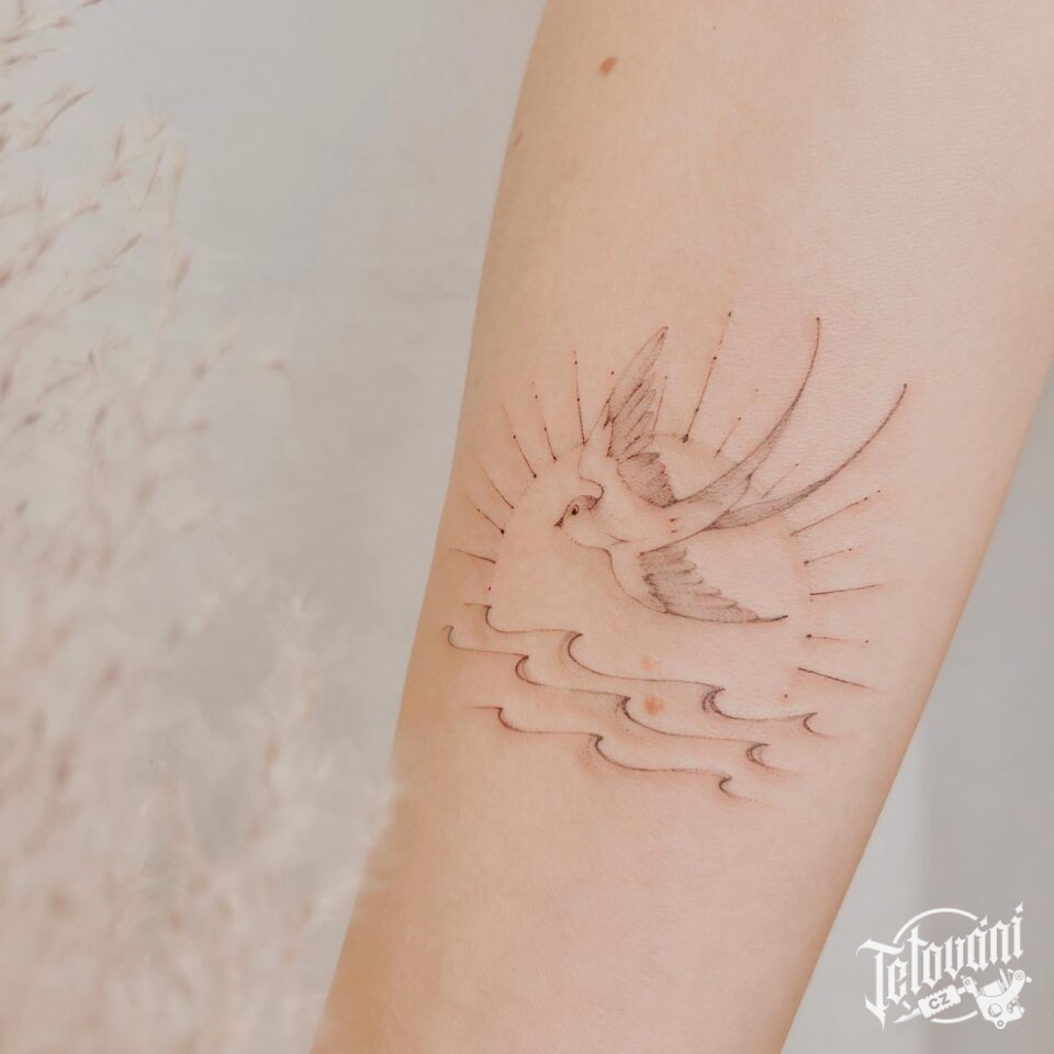 Tetování vesmír, Slunce, zvíře, pták, vlaštovka na předloktí