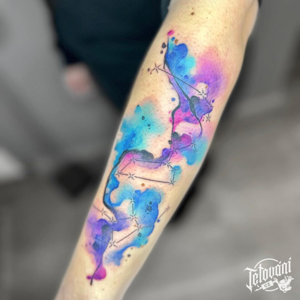 Tetování vesmír, souhvězdí na předloktí