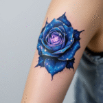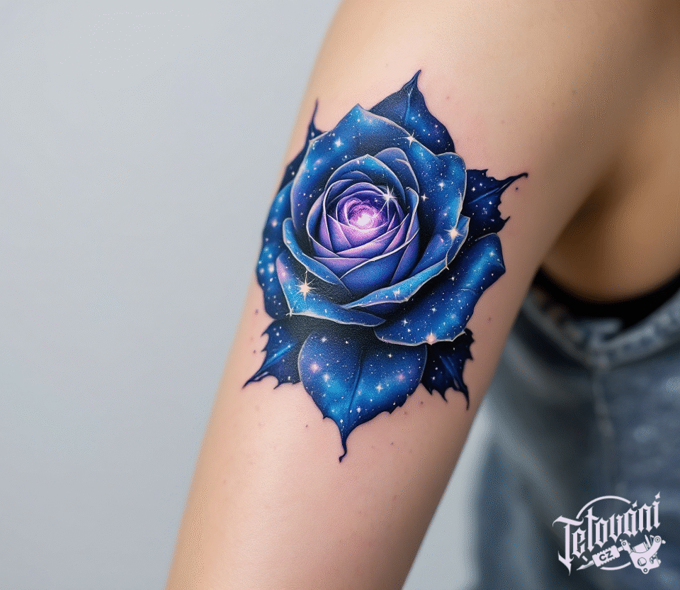 Tetování vesmírná modrá růže na rameno