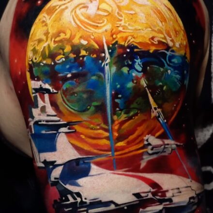 Tetování vesmírné UFO na rameni