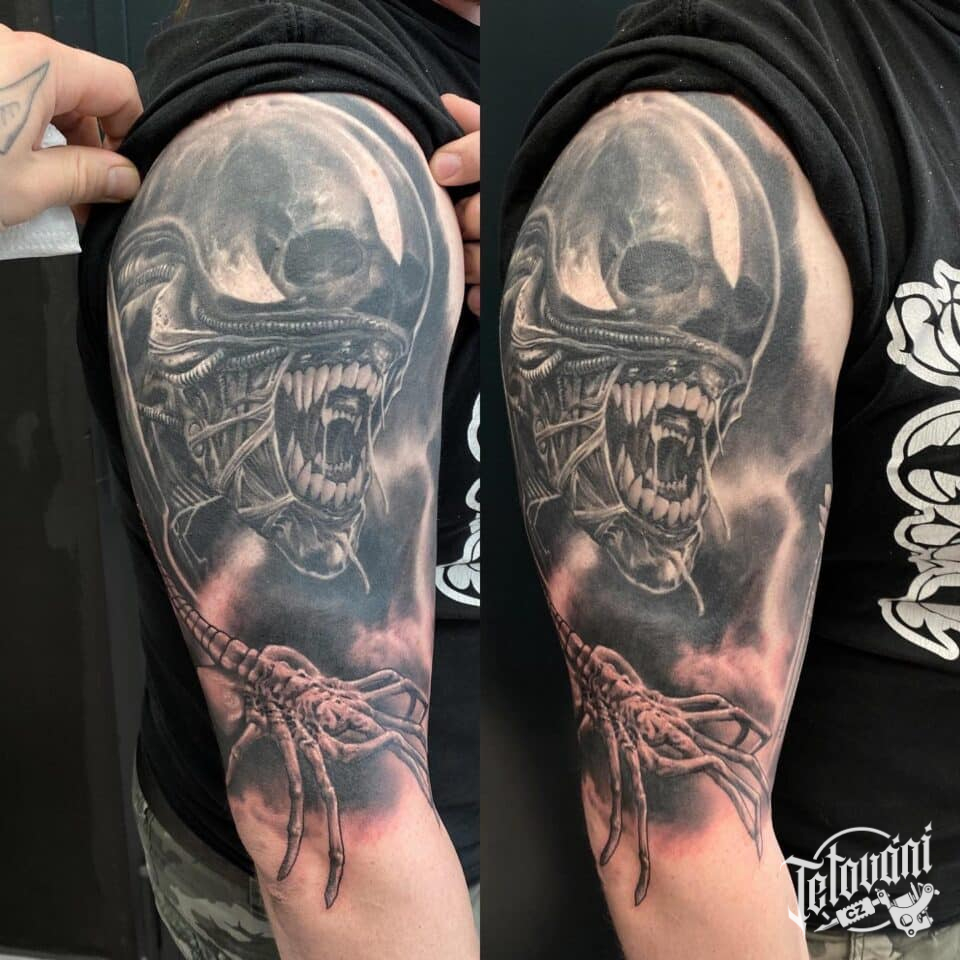 Tetování vetřelec nadpřirozená bytost na rameno
