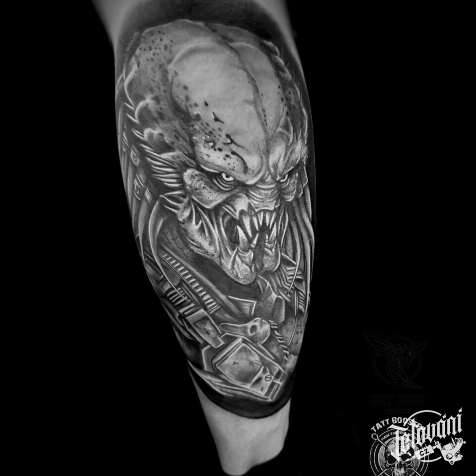 Tetování nadpřirozená bytost vetřelec z filmů a pohádek na lýtko