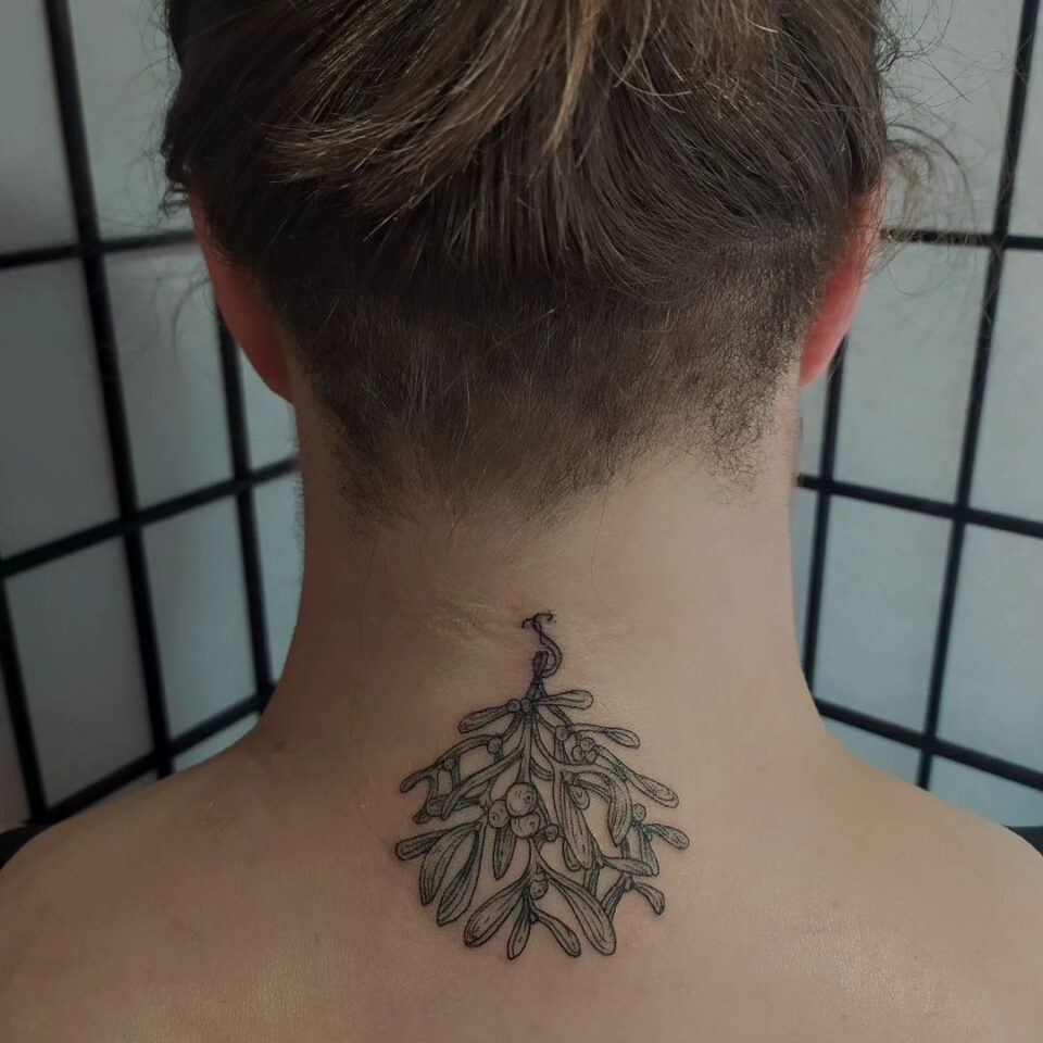 Tetování větvička jmelí, symbol na páteř