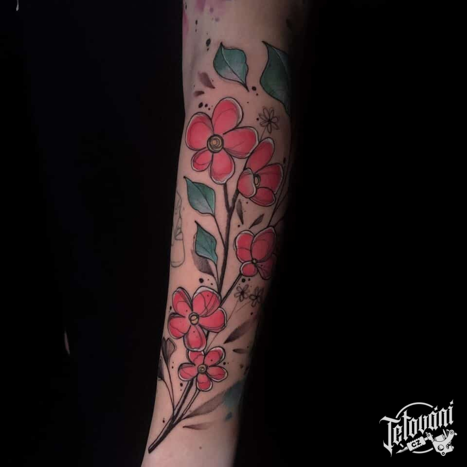 Tetování větvička květin na předloktí