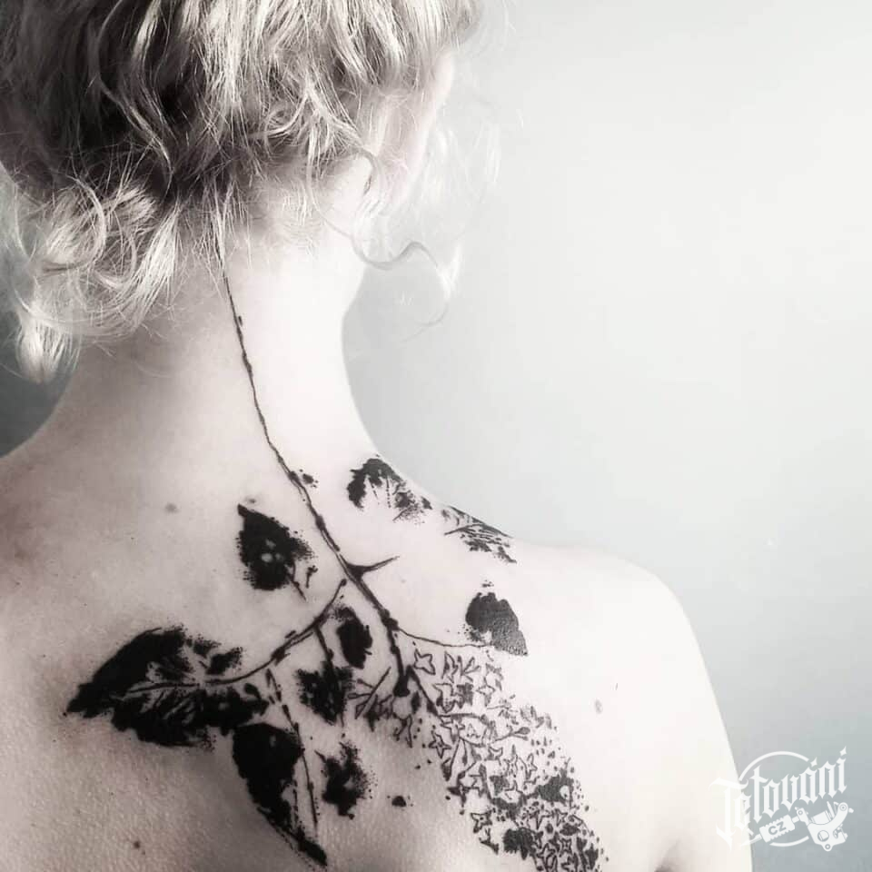 Tetování větvička, květina na lopatky