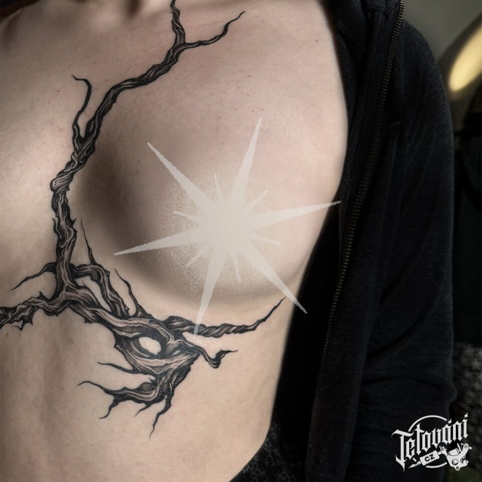 Tetování větvička mezi prsa