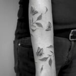 Tetování větvička, motýl na předloktí
