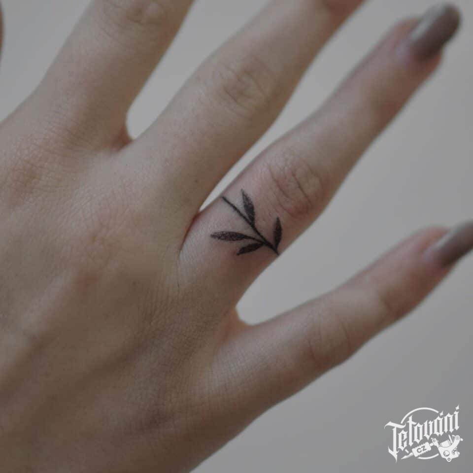 Tetování větvička jako prstýnek na prstě