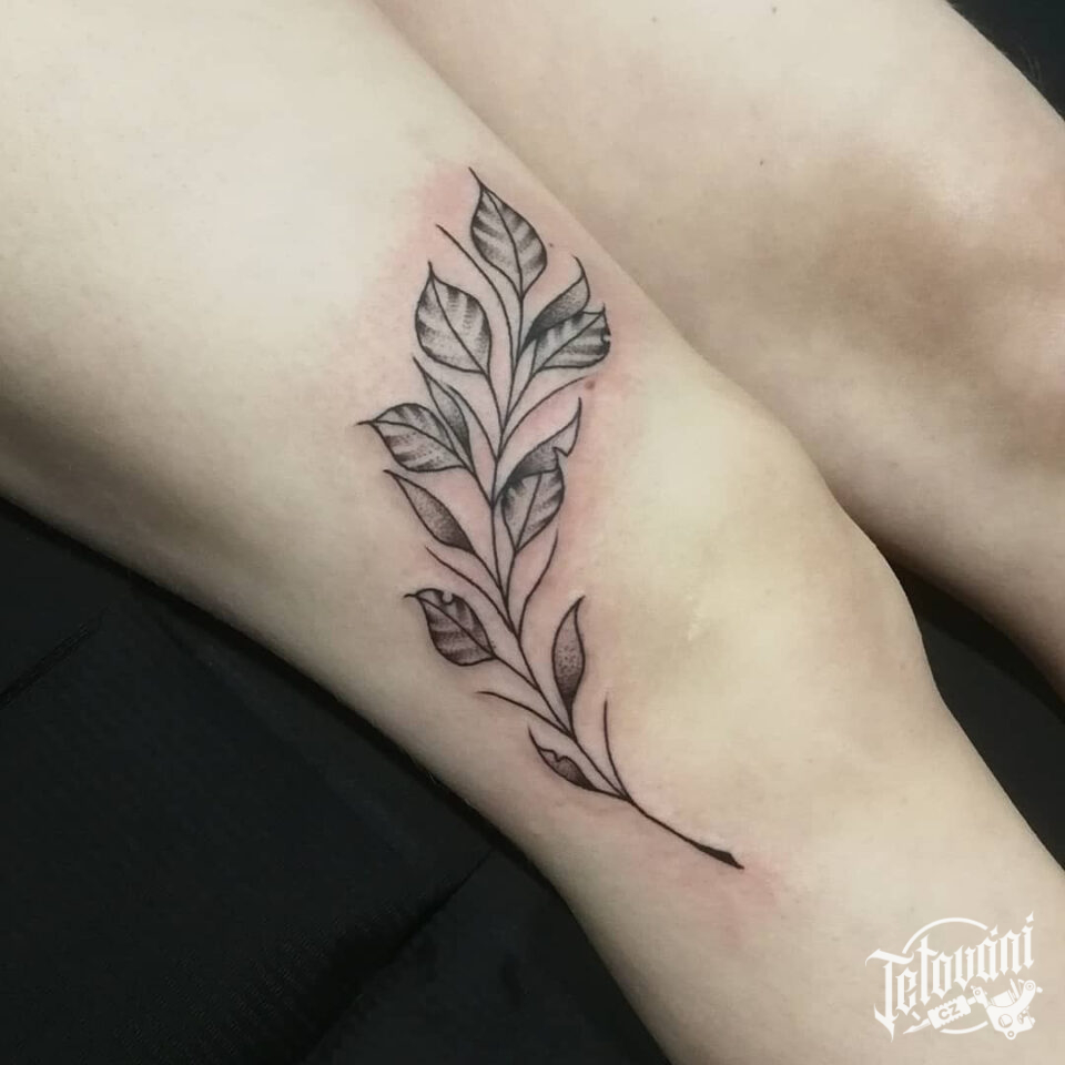 Tetování větvička na stehně