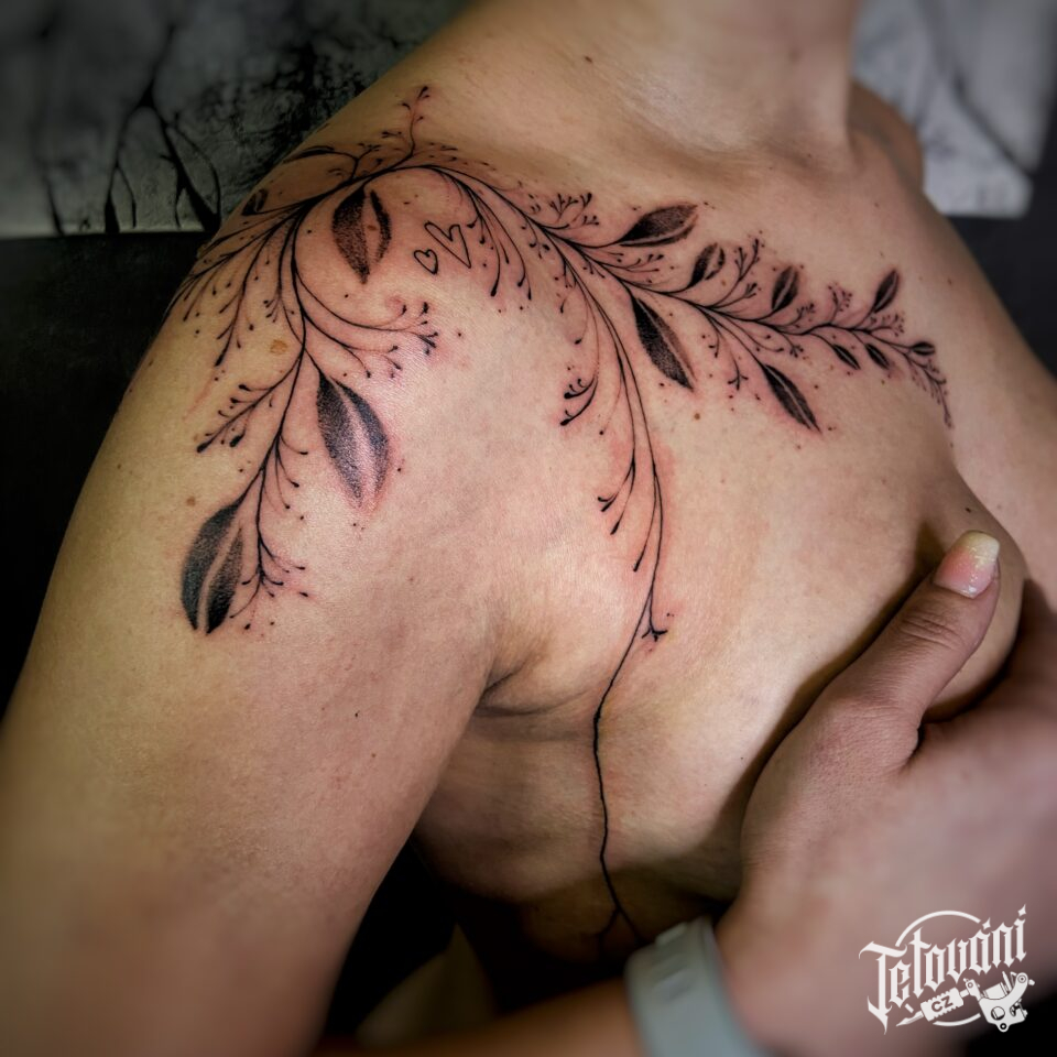 Tetování větvička pod klíční kost