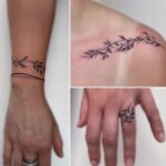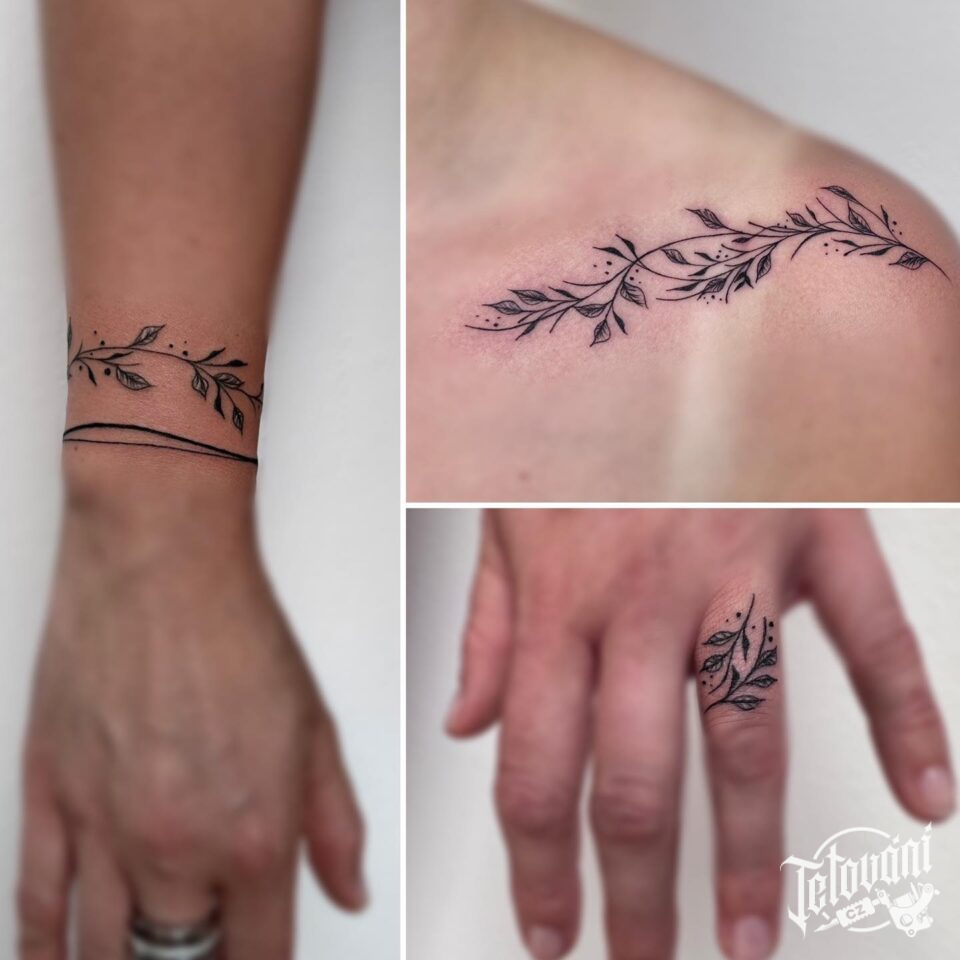 Tetování větvička pod klíční kost, zapěstí a prst