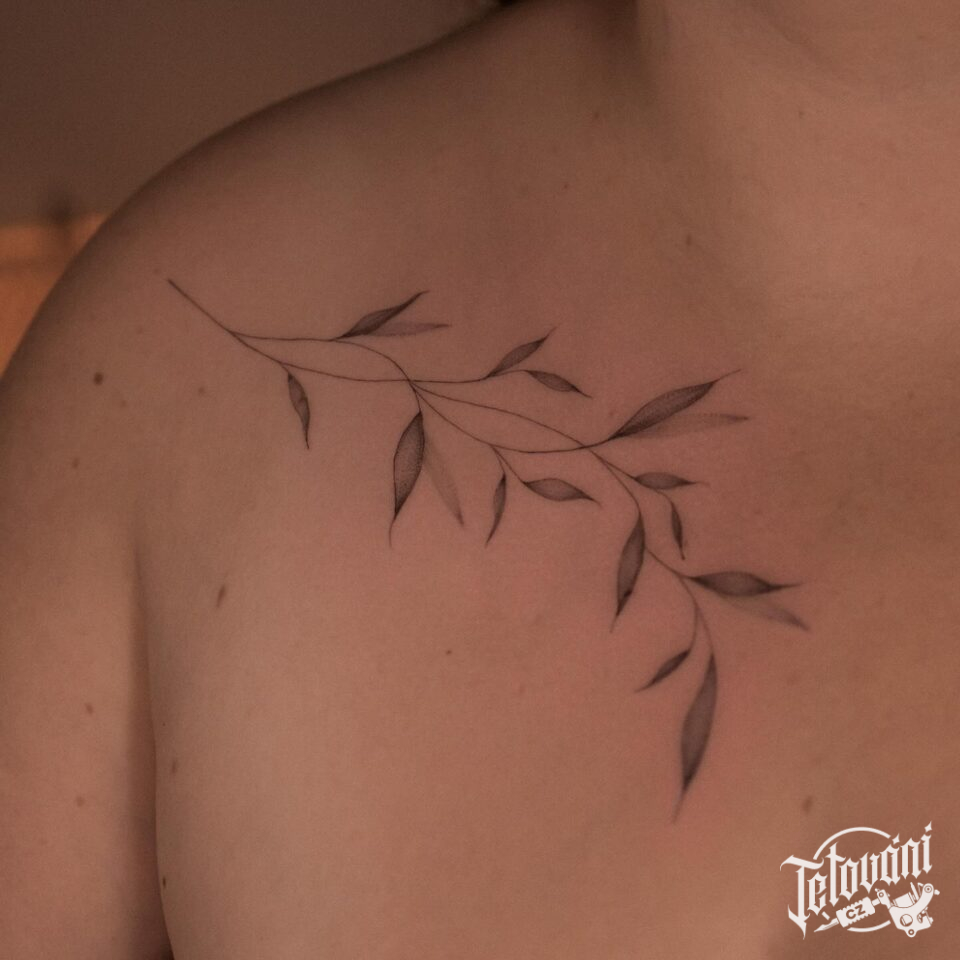 Tetování větvička pod klíční kosti