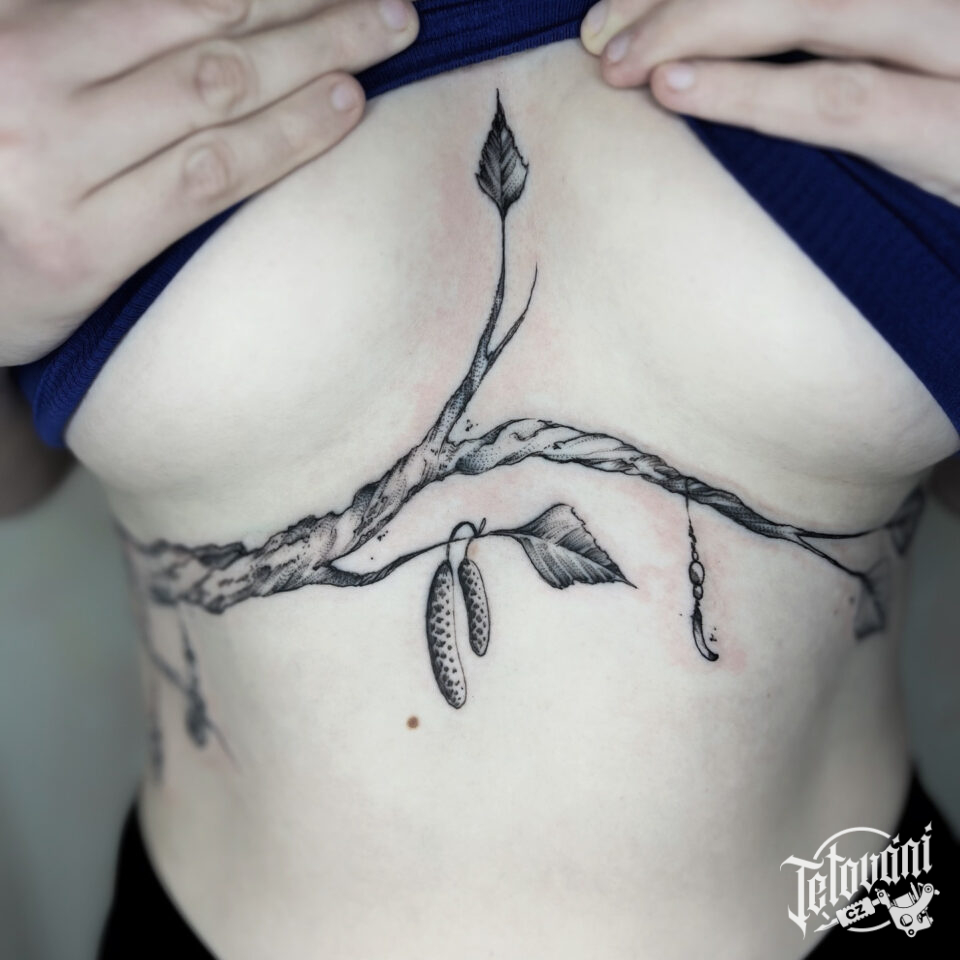 Tetování větvička pod prsa