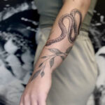 Tetování větvička s listy, had na předloktí