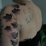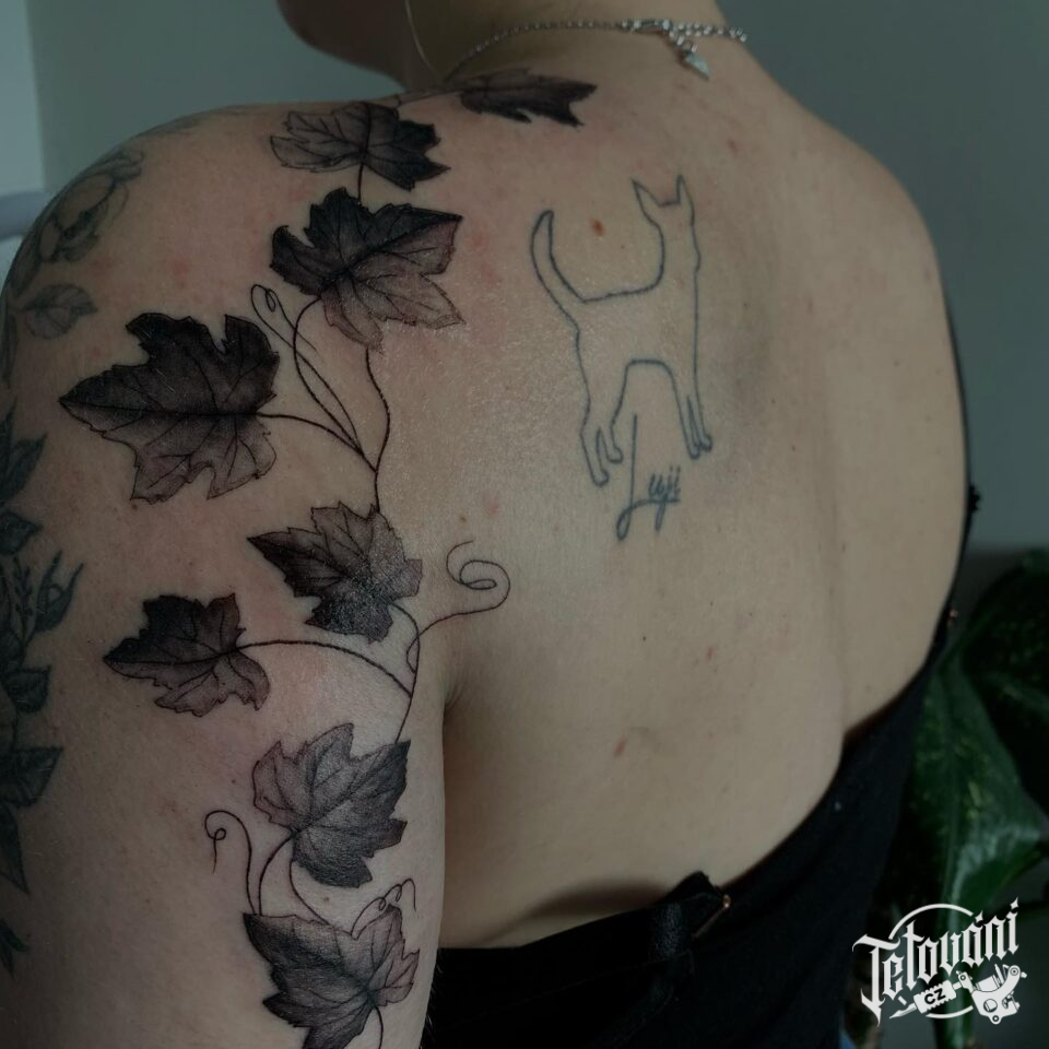 Tetování větvička s listy na rameno