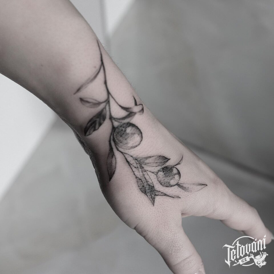 Tetování větvička s ovocem, symbol zdraví na hřbet ruky