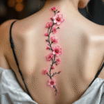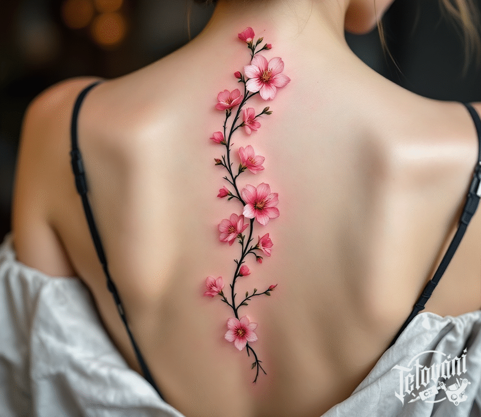 Tetování větvička s třešňovými květy na páteři