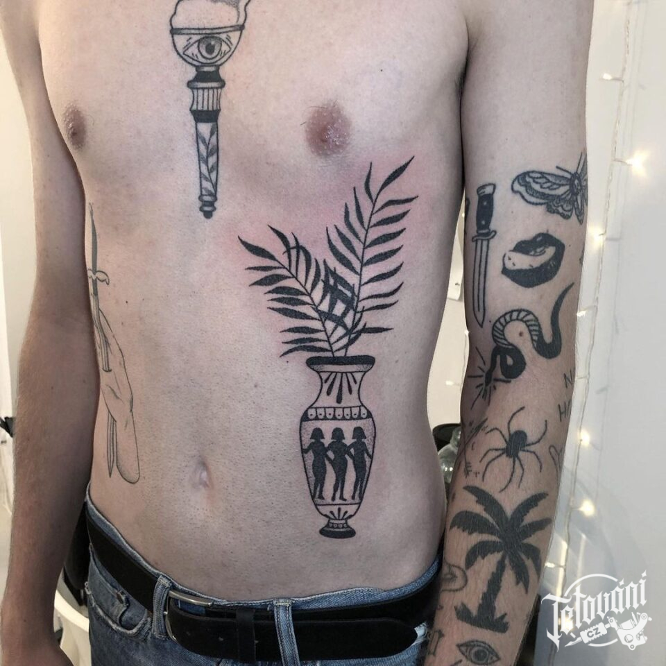 Tetování větvička ve váze na žebrech