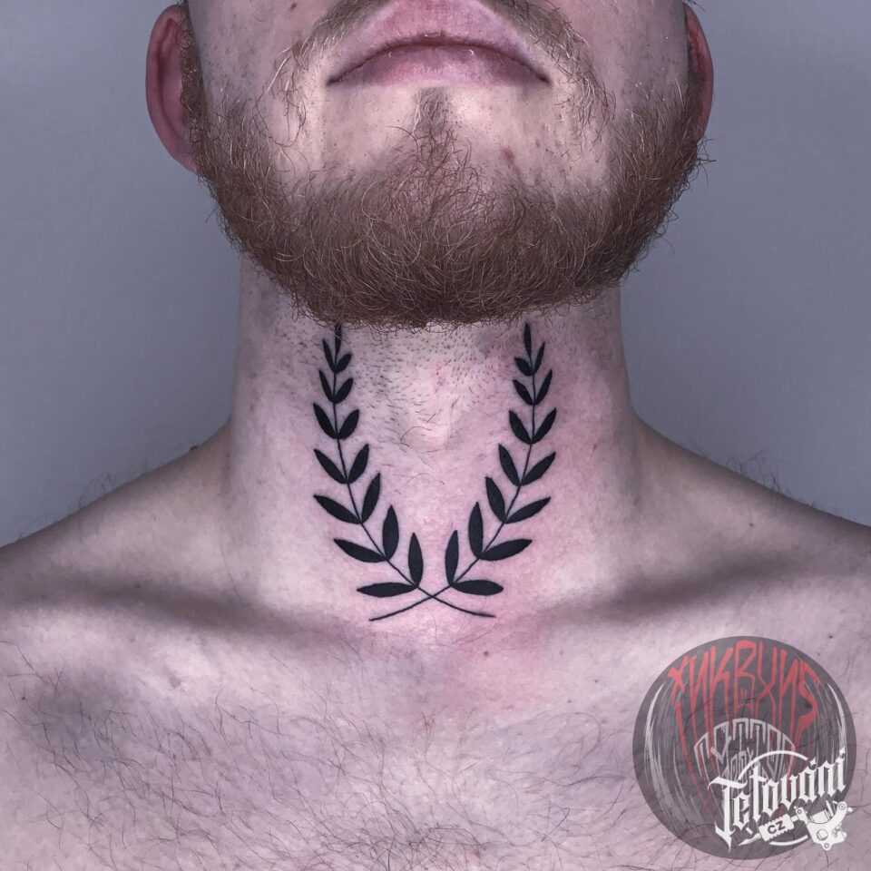Tetování větvičky listů na krku